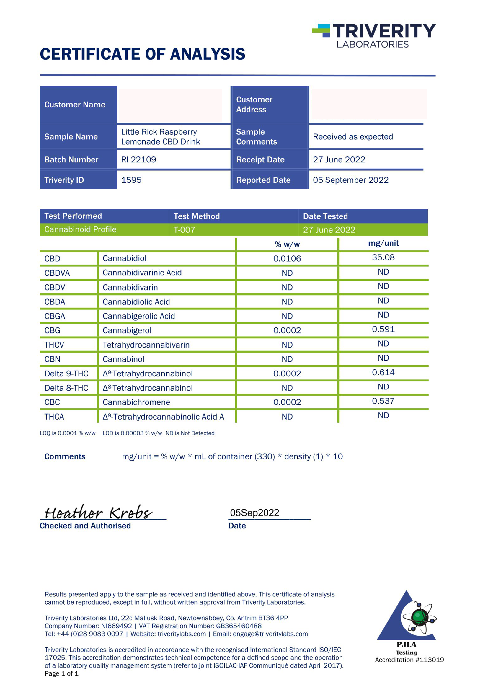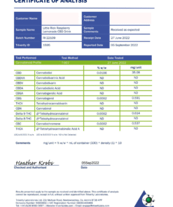 Ingredients: Water, Acid, Natural Flavourings, Colour, Sweeteners, Acidity Regulator, Preservatives, Full-Spectrum CBD, Limonene, THC content<0.2%