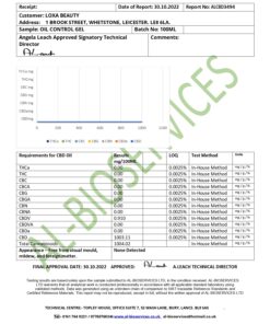 Ingredients: Aqua, Prunus amygdalus dulcis (sweet almond) oil, Aloe barbadensis (organic leaf) extract, Mentha piperita extract, Glycerine, Polysorbate-20, humectant E422, Phenoxyethanol ethylhexyglycerin, Carbomer, Sodium hydroxide, Benzyl alcohol, Hyaluronic acid, Rosa canina L, Persea gratissima, Perlagonium extract, Citrus bergamia, CBD extract.